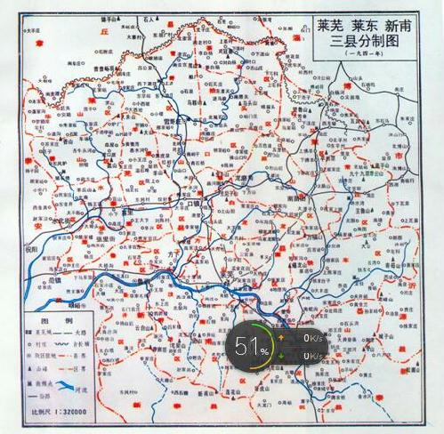 莱芜县(市)位于山东省的中部。北依章丘、淄博;南邻新泰;东靠沂源;西连泰安。地势东、南、北三面环山,西面是平原。西北从泰山山脉起蜿蜒东行与沂、蒙山区相毗连;南面是莲花山,与泰安的徂徕山相连。境内主要有汶、汇两大河流,汇全县之水西流入泰安;全县有泰莱、新莱、博莱、章莱四大主要公路干线,交通方便。全县总面积为2,100平方公里。1949年底,全县辖16个区,人口516,529人。境内气候适宜,物产丰富,人民勤劳、勇敢、淳厚朴实,号称“齐鲁礼义之邦”。